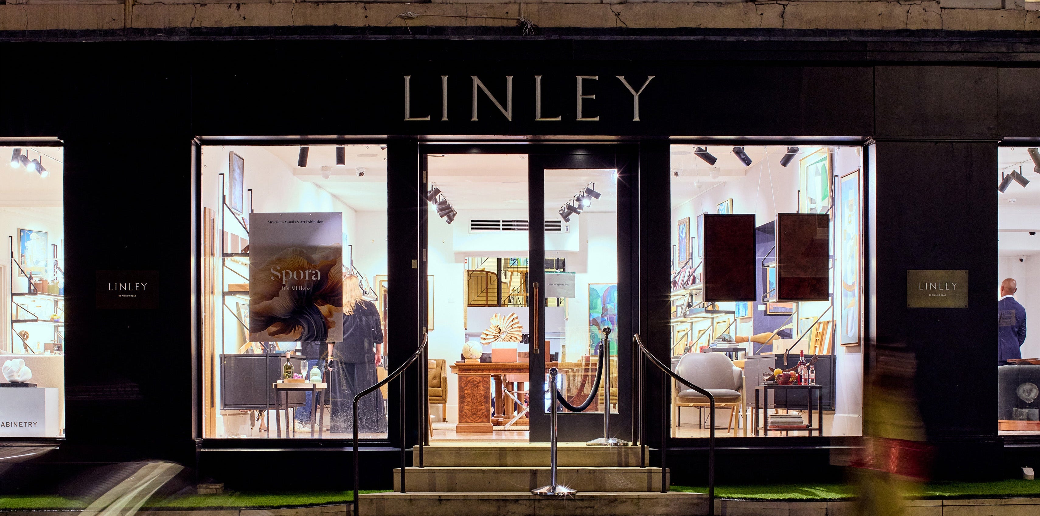 Within LINLEY’s timeless showroom, guests discovered the Wild Collection—a series of textiles and artworks crafted in seven natural mycelium shades such as Wild Ashes, Wild Embers, and Wild Moss. Created through Spora’s pioneering biotechnology, each piece transforms organic growth into enduring design.